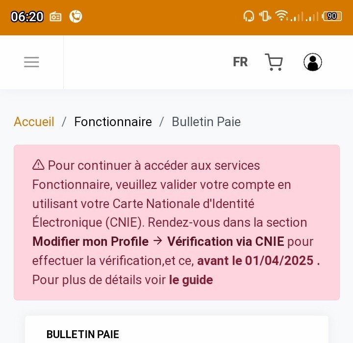 هذه الرسالة توصل بها الجميع بمجرد فتح الموقع والاطلاع على الوضعية الإدارية أو المالية تجد هذه الرسالة في الأعلى. مفادها أنه ابتداء من فاتح أبريل لن تتمكن من استخدام الموقع إن لم تسجل في تطبيق Mon e id (هويتي الرقمية) ولا يمكن التسجيل في هذا التطبيق إلا بالبطاقة الوطنية الجديدة التي تحمل شريحة أما البطاقة الأخرى لا يقبلها التطبيق. بمعنى إن أردت الاستمرار في الاطلاع على وضعياتك في موقع الخزينة العامة لابد من تغيير البطاقة الوطنية بالبطاقة الجديدة ذات الشريحة الالكترونية ولو كانت بطاقتك سارية المفعول. ما دمت في المغرب فلا تستغرب. دائما الإدارة تستمتع بتعذيب المواطن.